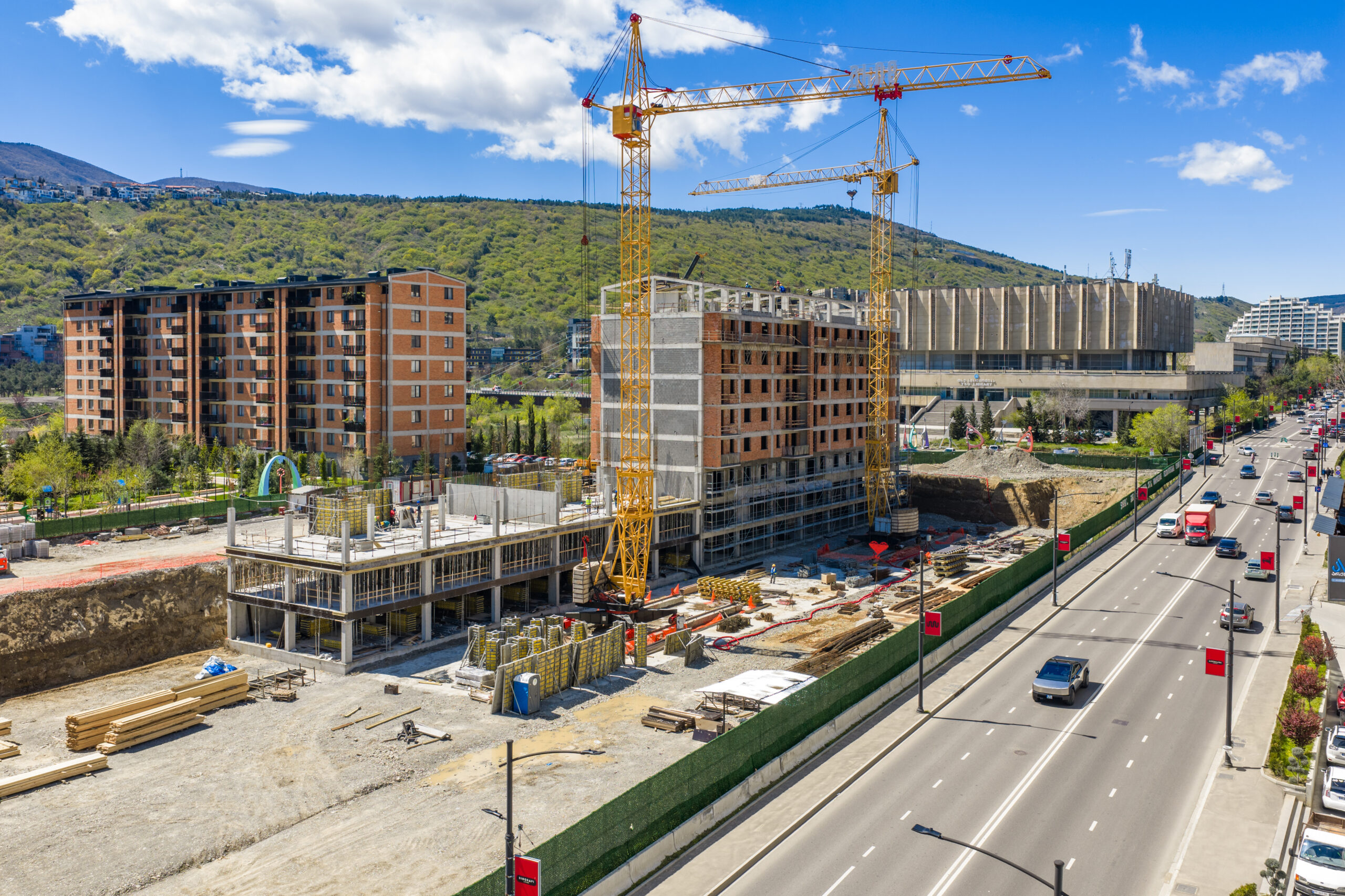 The residential area is located on 20a University Street, opposite the New Sports Palace and near the TSU Library. The plan includes constructing 15 residential buildings on a 6.2-hectare site.